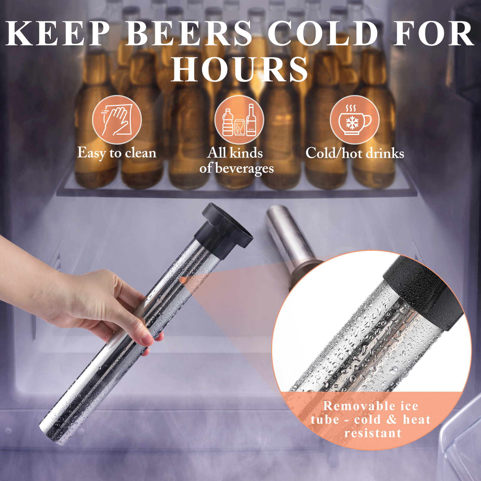 [Keep Beverages Chilled]: Removable ice tube keeps your beverages cold for hours, allowing you to enjoy a refreshing drink in every glass. Thanks to high quality PC material, the beer tower can hold not only cold drinks but also hot drinks and is not easy to break.