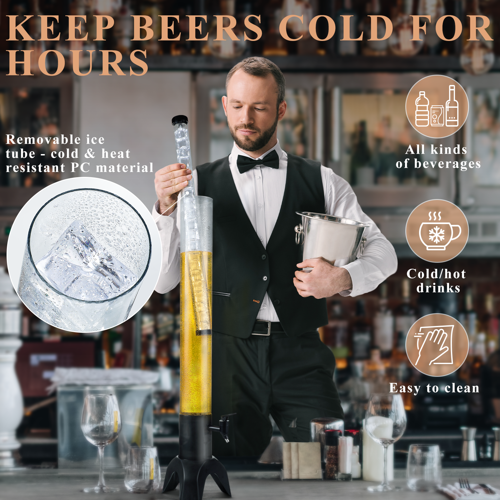 [Keep Beverages Chilled]: Removable ice tube keeps your beverages cold for hours, allowing you to enjoy a refreshing drink in every glass. Thanks to high quality PC material, the beer tower can hold not only cold drinks but also hot drinks and is not easy to break.